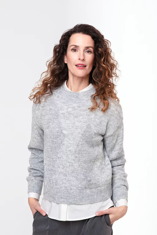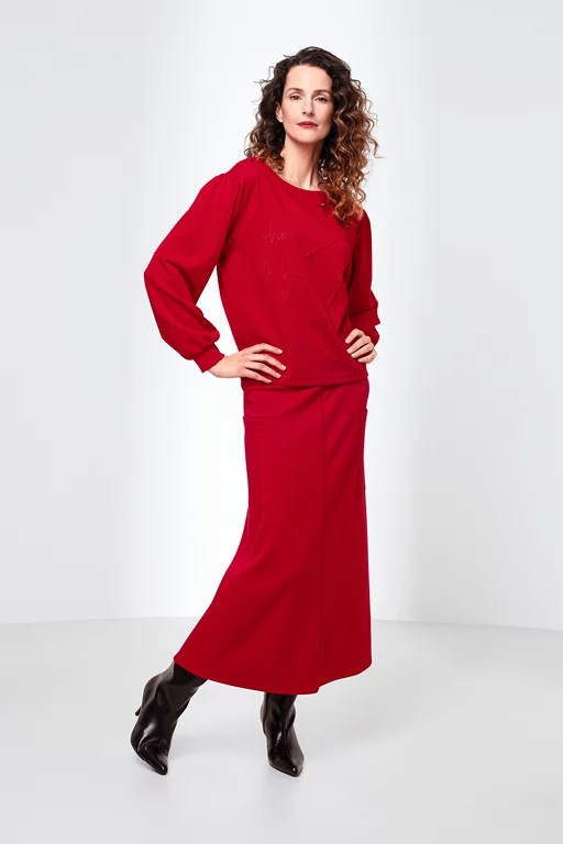 Midi-Rock und Pulli, steht hoch im Kurs.