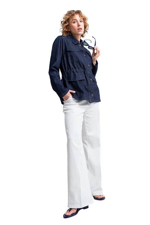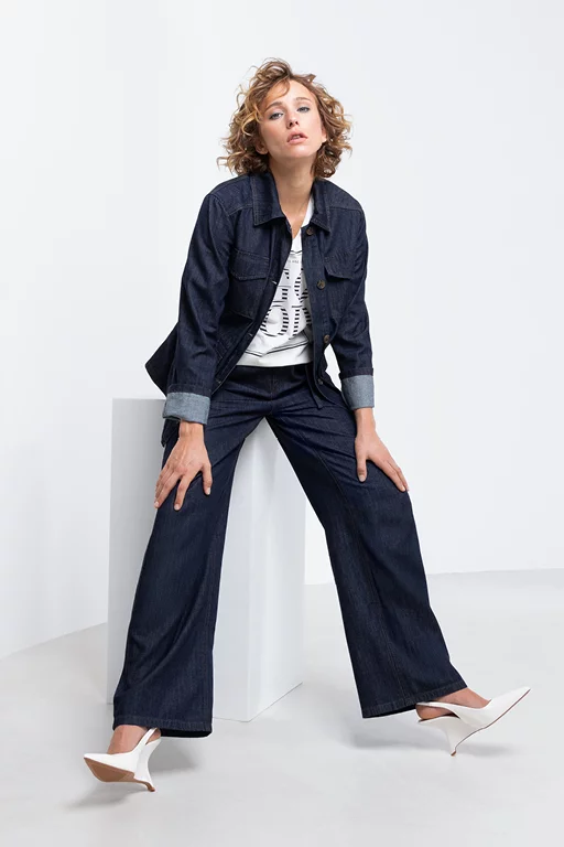 Bleu-Nuancen, Mint und Offwhite läuten, zusammen mit einem dunklen Blau, die neue Saison ein. Transsaisonale, sofort tragbare Styles spielen in diesem Thema eine zentrale Rolle. Denim wird über Farben, Waschungen und Styles neu interpretiert. Lässigkeit bleibt die übergreifende Strömung, die alles prägt.